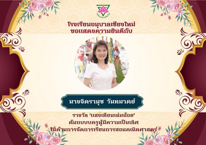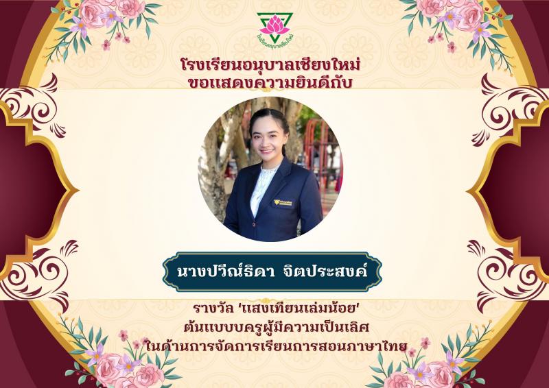โรงเรียนอนุบาลเชียงใหม่ ขอแสดงความยินดีกับคุณครูที่ได้รับราง..