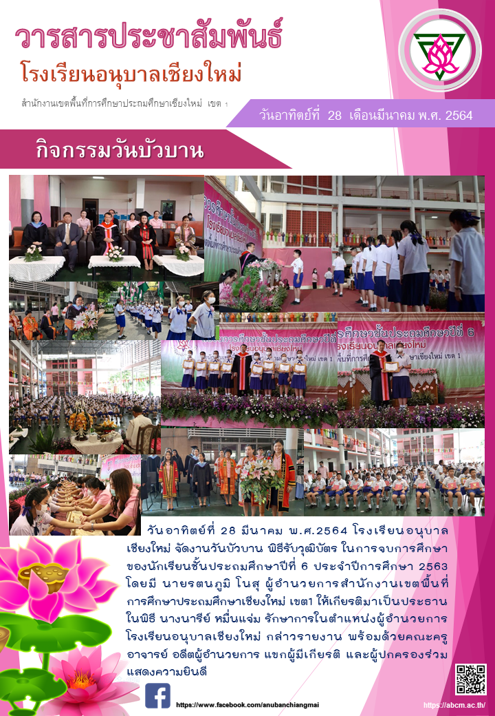 โรงเรียนอนุบาลเชียงใหม่ จัดพิธีรับวุฒิบัตรนักเรียนประจำปีการศึกษา 2563