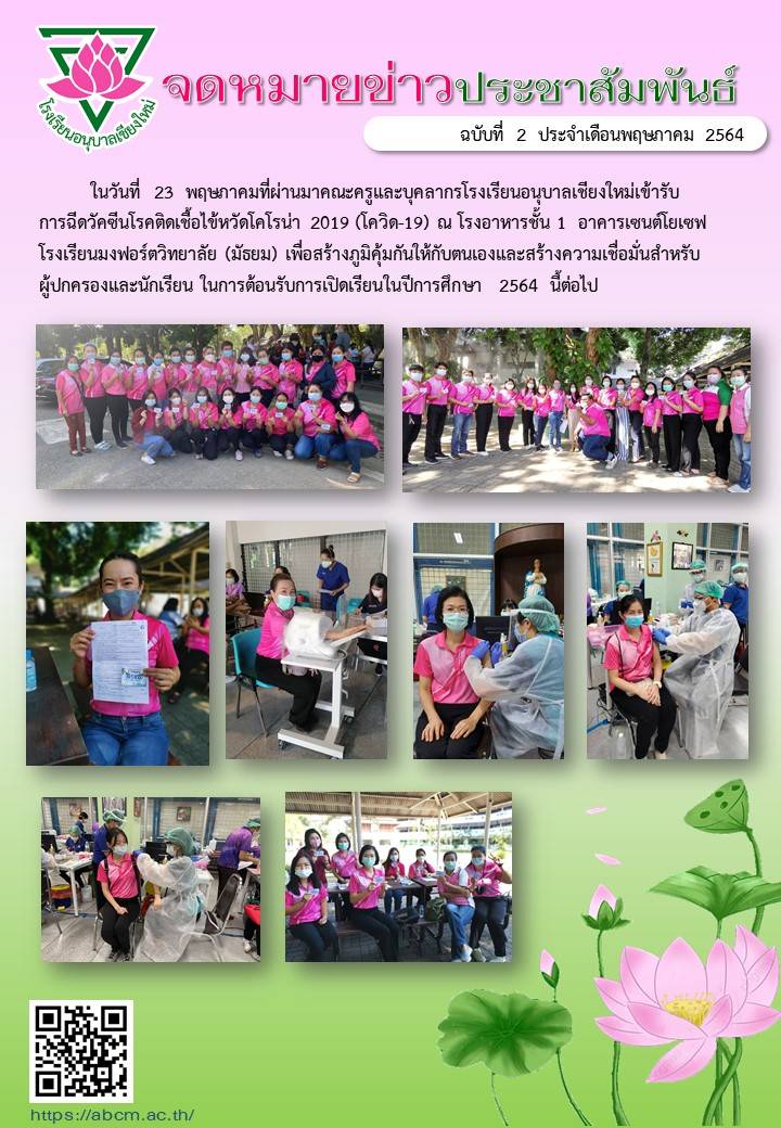 คณะครูและบุคลากรโรงเรียนอนุบาลเชียงใหม่เข้ารับการฉีดวัคซีนโรคติดเชื้อไวรัสโคโรน่า2019