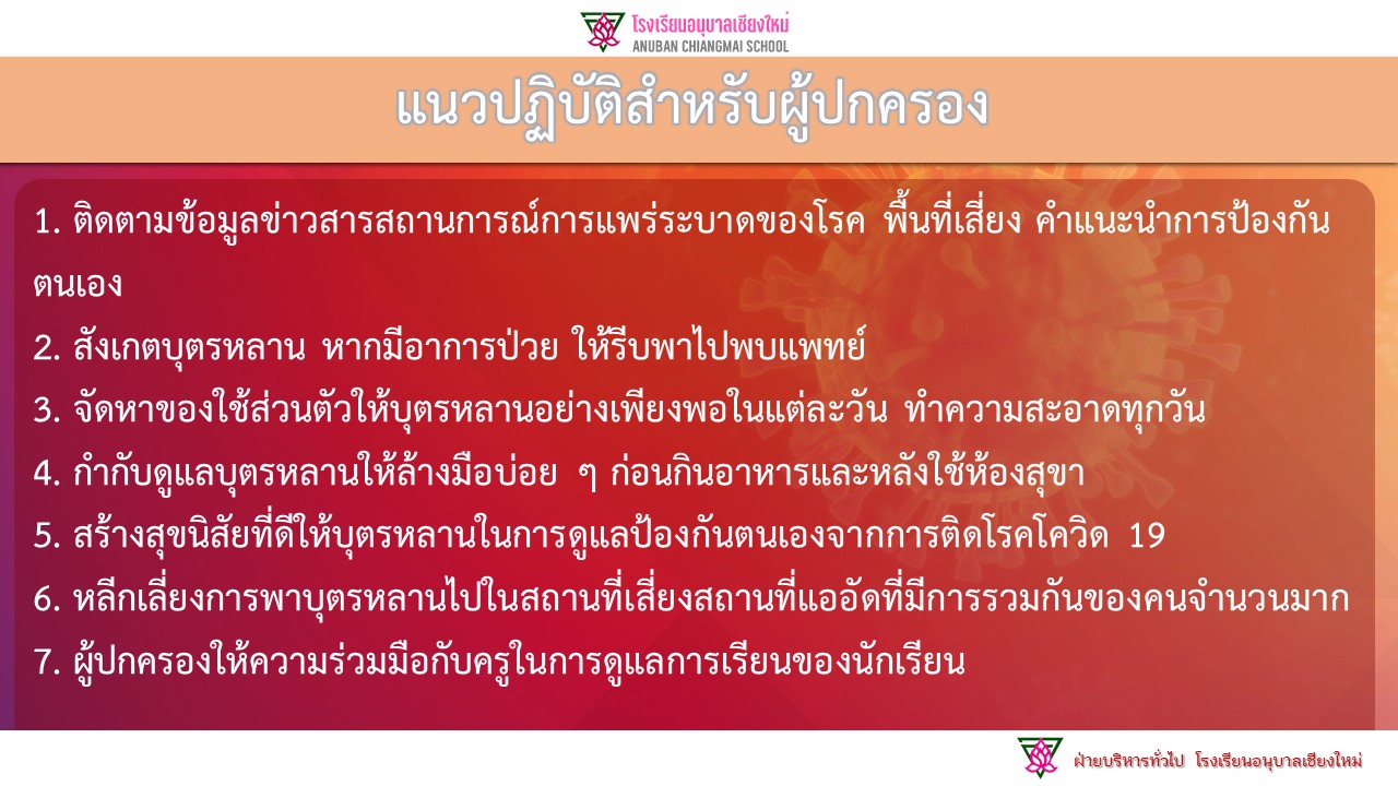 แนวปฏิบัติสำหรับนักเรียนและผู้ปกครอง ในการป้องกันการแพร่ระบาดของโรคโควิด-19