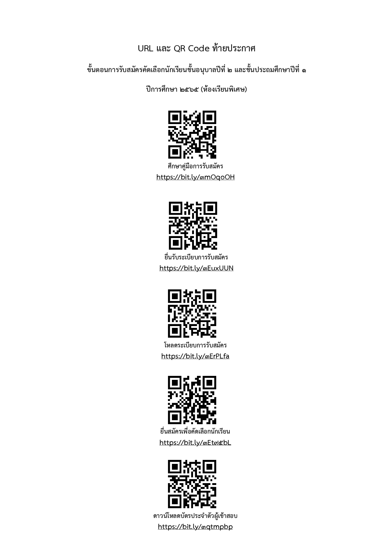 1.7 ยื่นใบสมัครโดยการกรอกผ่านระบบออนไลน์ https://bit.ly/3Et95bL หรือ QR Code ท้ายประกาศนี้ วันที่ 5 – 9 กุมภาพันธ์ 2565 เวลา 08.00-16.00 น. (5 วันเท่านั้นตามปฏิทินการรับนักเรียน สำนักงานคณะกรรมการการศึกษาขั้นพื้นฐาน ที่รับสมัครพร้อมกันทั่วประเทศ)