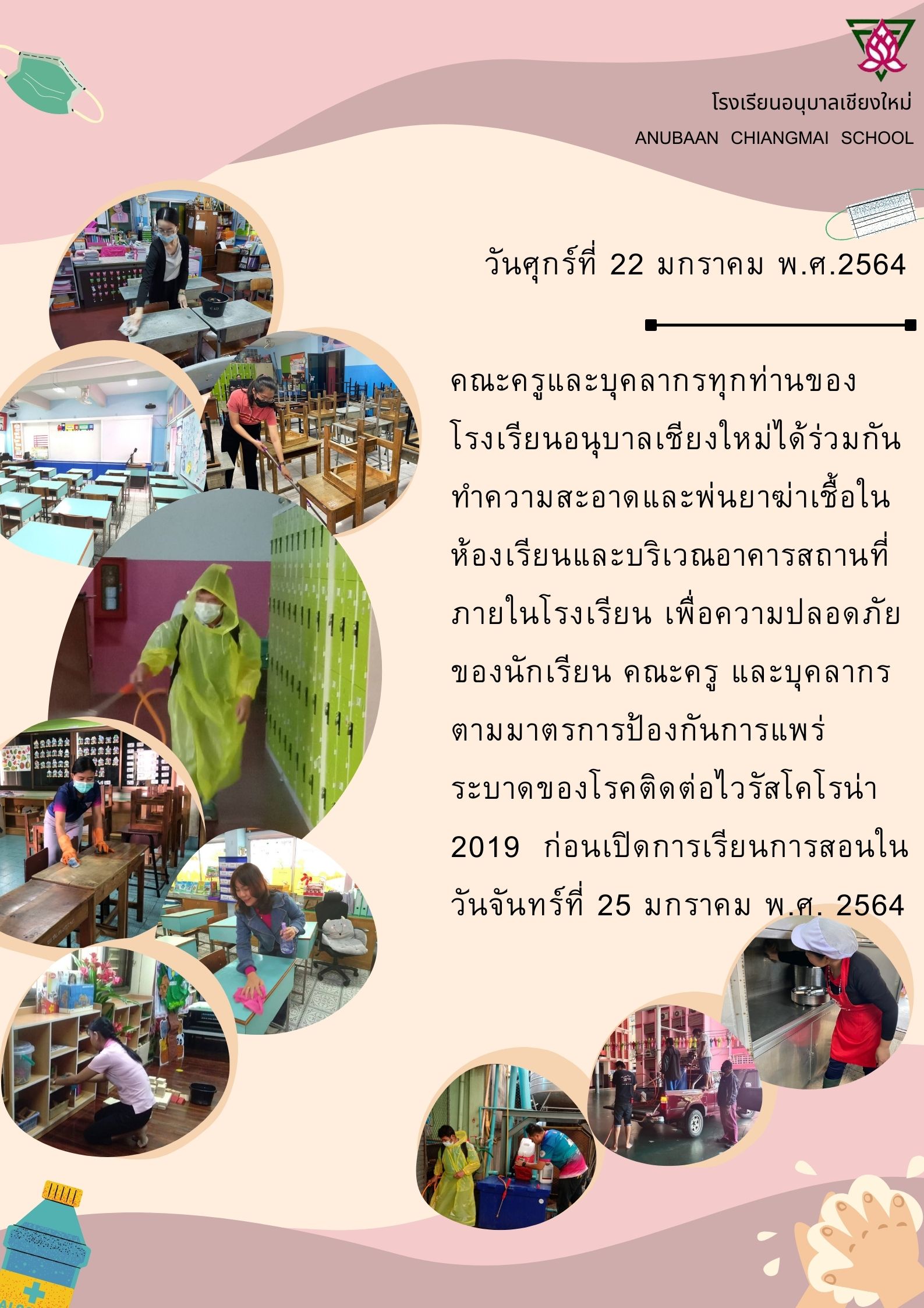 การป้องกันและเฝ้าระวังการแพร่ระบาดของโรคติดเชื้อไวรัสโคโรน่า (โควิด-19) ก่อนเปิดการเรียนการสอนตามปกติในวันจันทร์ที่ 25 มกราคม 2564 นี้