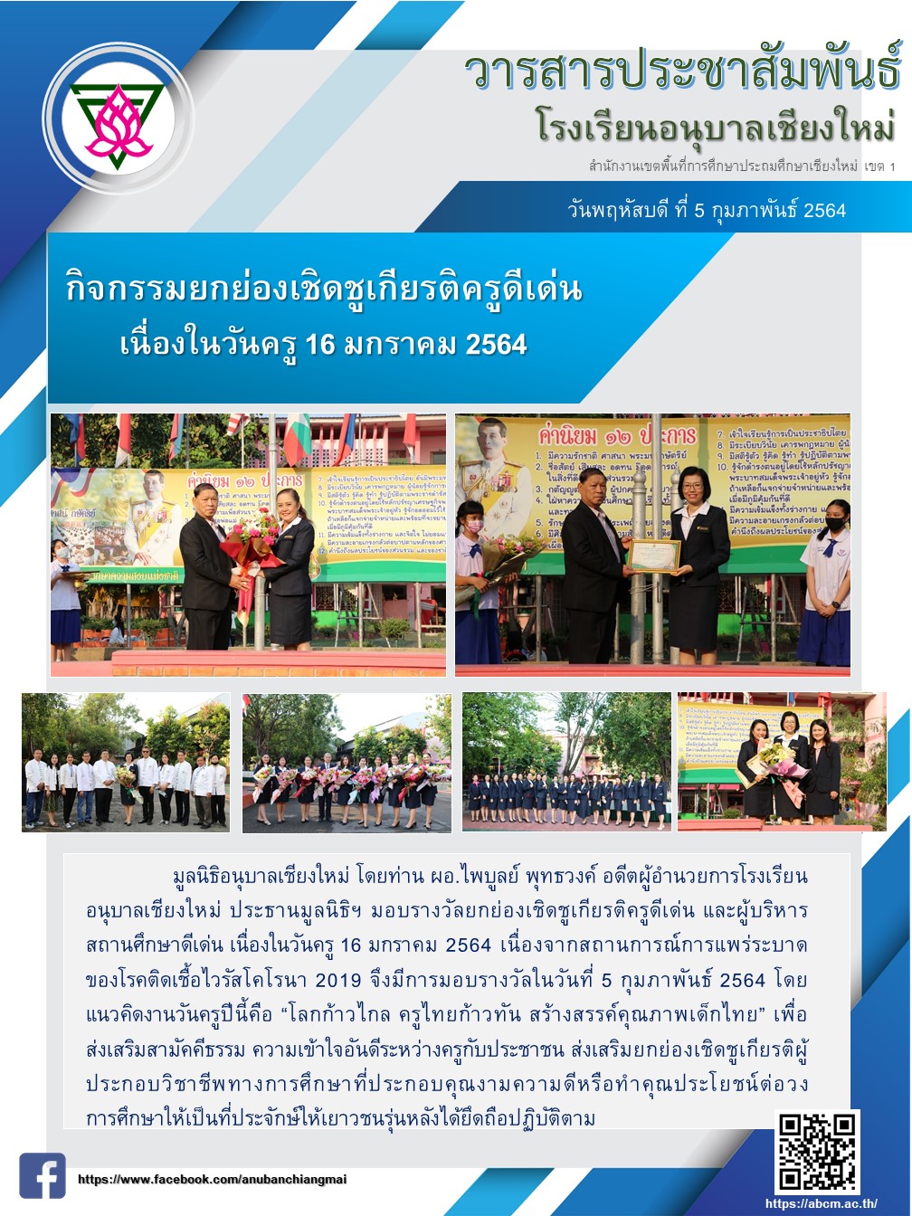 กิจกรรมยกย่องเชิดชูเกียรติครูดีเด่น เนื่องในวันครู 16 มกราคม 2564