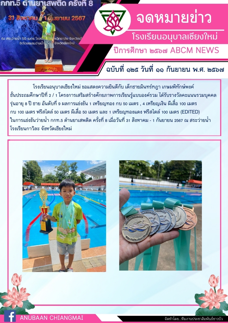 โรงเรียนอนุบาลเชียงใหม่ ขอแสดงความยินดีกับ เด็กชายกฤตพล บุญรักษา และเด็กชายมินทร์ฑฎา เกษมพิทักษ์พงค์