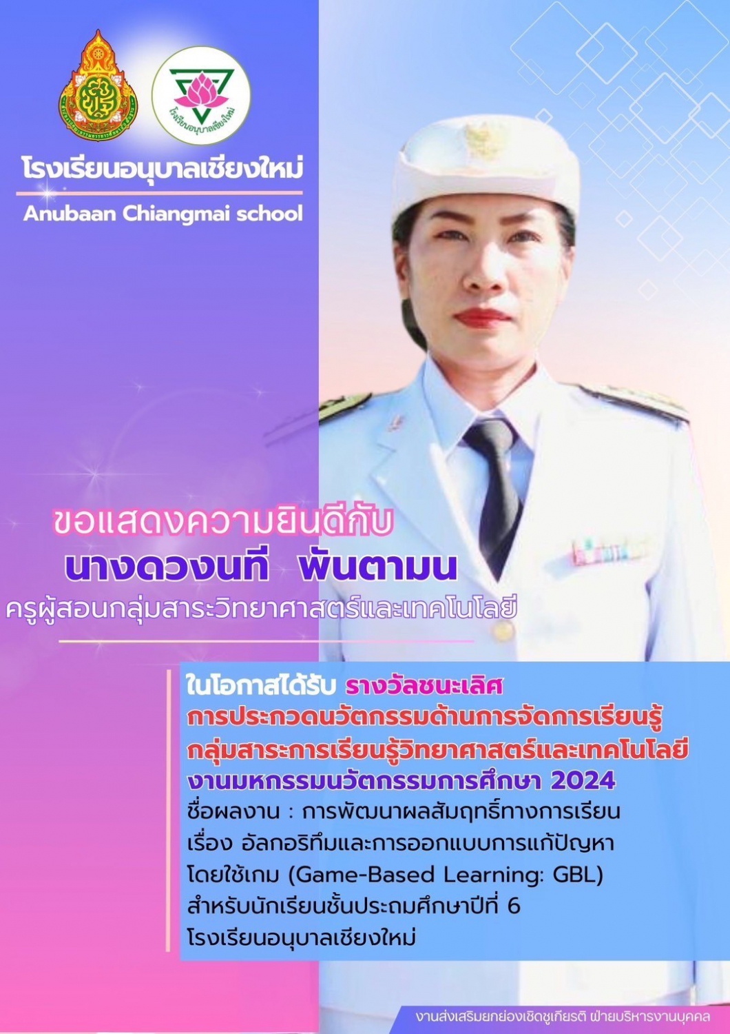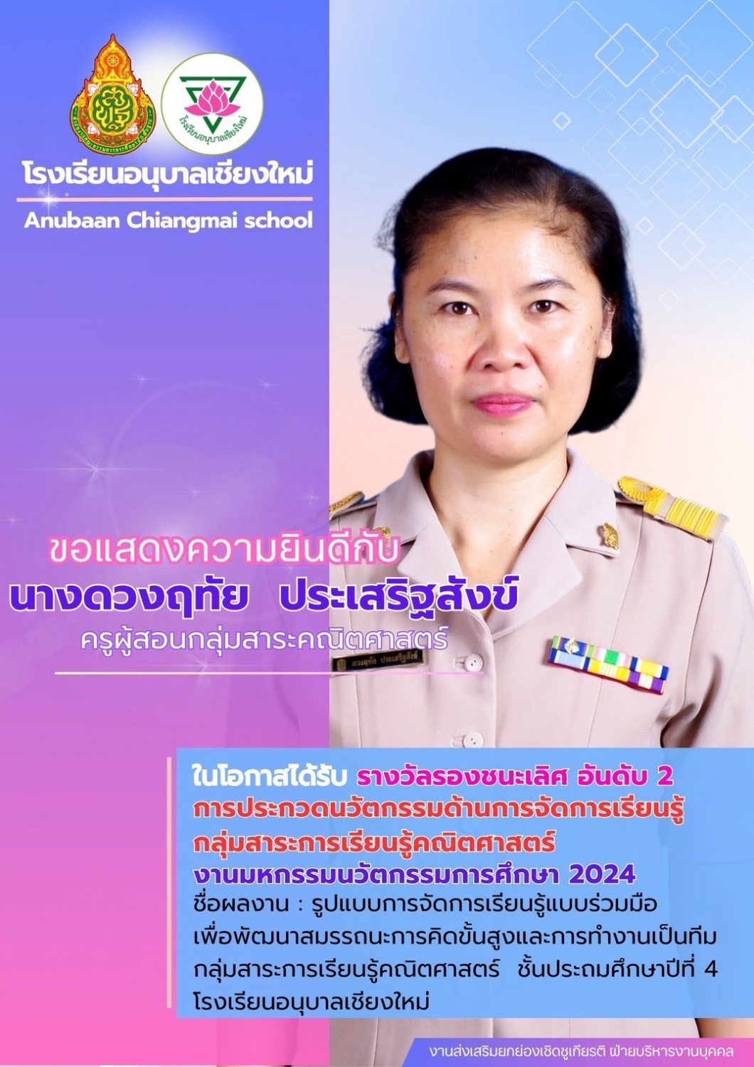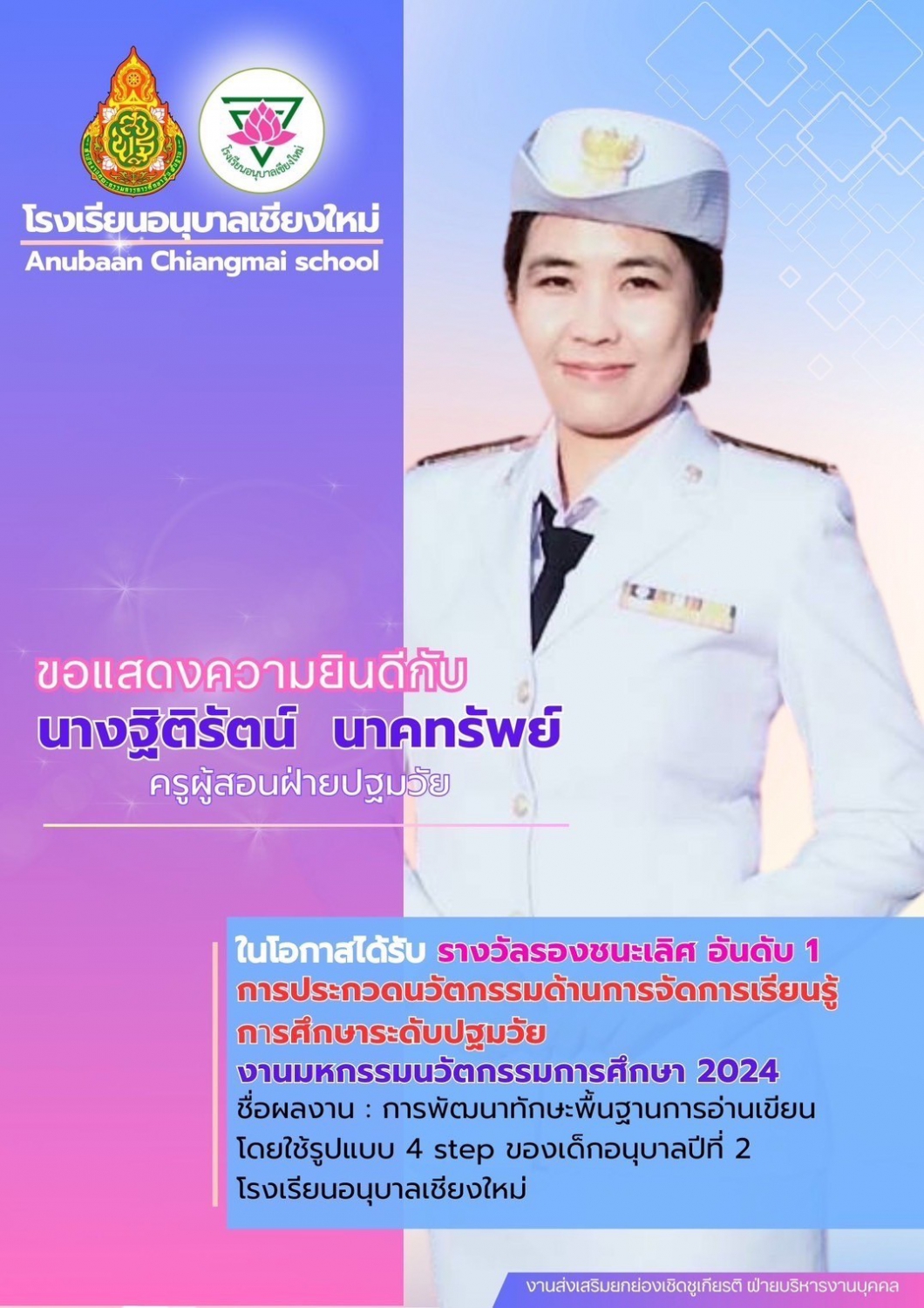 โรงเรียนอนุบาลเชียงใหม่ ขอแสดงความยินดีครูที่ได้รับรางวัล ในงานมหกรรมนวัตกรรมการศึกษา 2024
